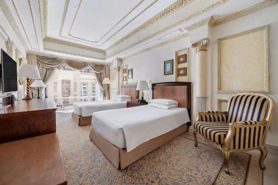 يقع فندق Dar Al Tawhid Intercontinental Makkah ذو الـ 5 نجوم أمام المسجد الحرام، ويوفر أماكن إقامة فاخرة مُطلة على المسجد الحرام. يحتوي الفندق على غرف ضيوف واسعة ذات أثاث أنيق، وتوفر العديد من الغرف إطلالة بانورامية على المسجد الحرام، وتتميز جميع الغرف بديكور شرقي، وتشتمل على مجموعة من وسائل الراحة العصرية، بما في ذلك تلفزيونات بشاشات بلازما مع قنوات فضائية، وتتوفر خدمة الواي فاي. يحتوي الفندق على 3 مطاعم يمكن للضيوف الاختيار منها، حيث تقدم مجموعة كبيرة من المأكولات العالمية، فضلاً عن العديد من أطباق الشرق الأوسط مع إطلالات رائعة على المسجد الحرم. يقع الفندق على بُعد مسافة قصيرة من مذبح إسماعيل والجمرة الوسطى التي تبعُد مسافة 5 دقائق فقط بالسيارة.
